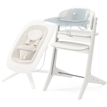 Drewnianie krzesełko do karmienia z leżaczkiem, bujakiem niemowlęcym, zestawem Baby i tacką