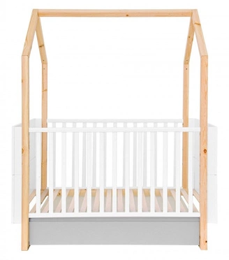 The crib with wooden house also has numerous arrangement possibilities not only for great fun. It can be the hut of a good fairy, a pirate ship, a hospital for bears injured in battle or just a good hiding place that every child dreams about.