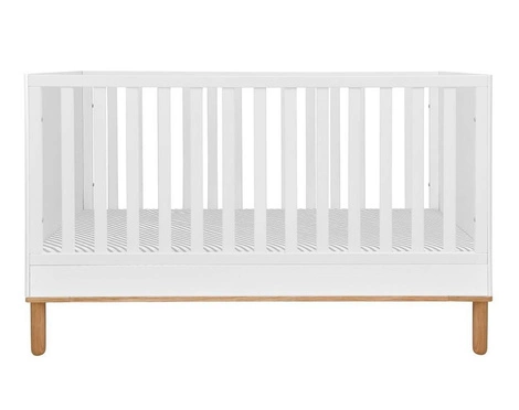 - Material of construction: sides of the crib made of MDF board, white foiled. The frames of the crib are made of beech wood, lacquered in white with child-safe paint, certified in accordance with the EN71/3 standard. Mattress frame made of beech plywood. Legs made of natural oak wood, finished with clear varnish.