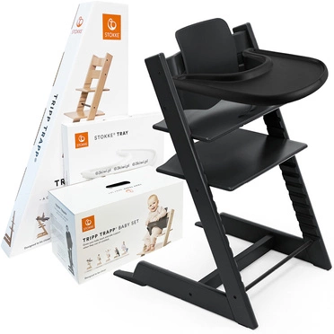 Black - deep, classic black with subtle beech wood texture.In a 3-in-1 set, it creates a coherent, monochromatic set - With matching Baby Set and tray in black.It's the most expressive version of the Tripp Trapp® , which will find its way into both modern, minimalist interiors and elegant, contrasting arrangements.