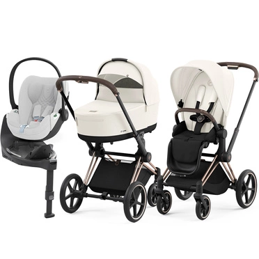 Cybex® Priam 4 4in1 set, deep-stroller with car seat and base | Off White + Rosegold