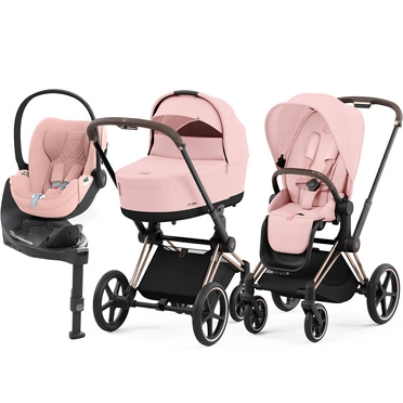 Cybex® Priam 4 4in1 set, deep-stroller with car seat and base | Peach Pink + Rosegold