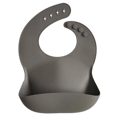 Mushie bibs have rounded fasteners so they are easier to fasten and fit around baby's neck.