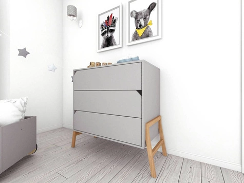 Next to the crib, the second most important piece of furniture in the baby's room. In the Lotta collection we present a three-drawer capacious chest of drawers. It perfectly matches the crib of the same series, is similar to it in height, so it can be a place where you can keep the most necessary baby accessories. The dresser top can be equipped with a changing table from the same collection and placed on the right, left or in the middle of the dresser top.