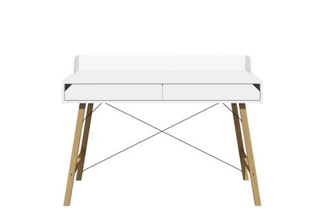 Desk designed with attention to detail, simple in form with a minimalist design. It has two capacious drawers, a tabletop restraint and a cable relocation hole to keep your desk tidy and avoid cable clutter.