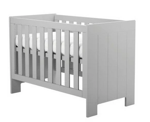 The crib is made of MDF board (sides with rungs, tops) and solid pine wood from Polish forests (frame). It has been painted with ecological water-based paints to ensure proper breathing and eliminate a factor that can cause allergies in children. The crib comes in white and gray colors.