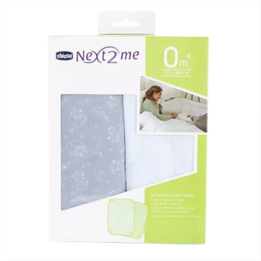 100% cotton. The sheet is compatible with Chicco Next2Me cribs (excluding the Forever model) and the attached mattress with dimensions: 50 x 83 cm.