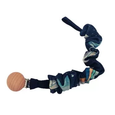 Material pacifier pendant with wooden clip, made of 96% cotton and 4% elastane