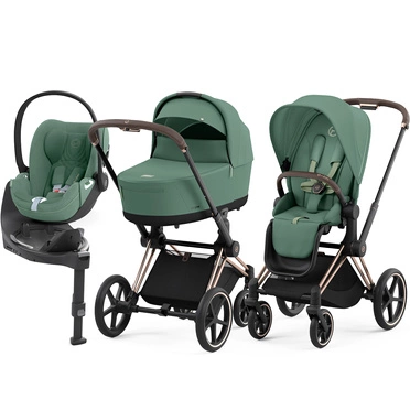 Cybex® Priam 4 4in1 set, deep-stroller with seat and base | Leaf Green + Rosegold