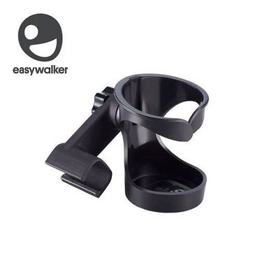Cup holder, dedicated to Miley, Buggy Go, Jackey and Harvey 3 strollers by Dutch brand Easywalker. Securely fastened to the frame or handlebar of the stroller with an integrated clip. Accommodates most bottles or cups up to 700 ml capacity. Its position can be adjusted with a knob. This is a very practical and convenient solution so that the parent can take the drink with them and have their hands free to drive the stroller. We can also keep the baby's drink in the holder, which is always at hand and stays upright, preventing spills or leaks. The handle is black and ergonomically shaped.