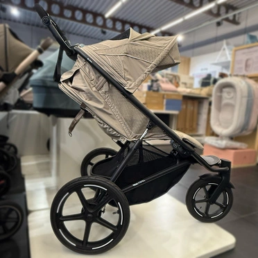 The stroller is equipped with large, pumped wheels and an effective shock absorption system, which ensures a smooth ride and maximum comfort for the child even in difficult terrain conditions. It's a great choice for daily walks and longer trips - no restrictions.