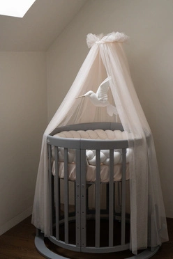 Waldin tulle canopy with handle will not only protect your baby from too much light or insects, but also create a warm, peaceful atmosphere perfect for falling asleep. It is a functional addition to the crib, which combines aesthetics and convenience of use. It will give your baby's room a unique character, and your little one's sleep will be calmer.