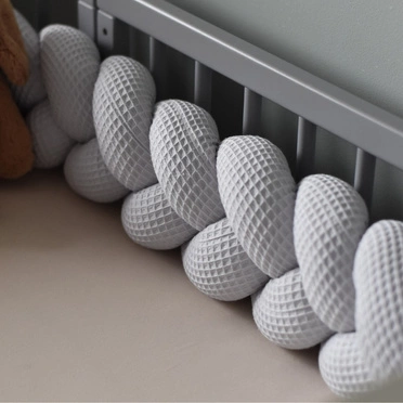 Braid of 3 strands is an interesting alternative to classic crib protectors. Great for the period when your baby is starting to turn on his own or making his first attempts to sit up.