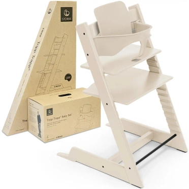 Stokke® Tripp Trapp® 2w1 to komplet idealny na etap, gdy dziecko zaczyna samodzielnie siadać – czyli ok. 6 miesiąca życia. Zestaw składa się z kultowego krzesełka Tripp Trapp® oraz Baby Setu – specjalnej nakładki z oparciem i pałąkiem, która bezpiecznie podtrzymuje malucha i umożliwia mu siedzenie przy wspólnym stole.