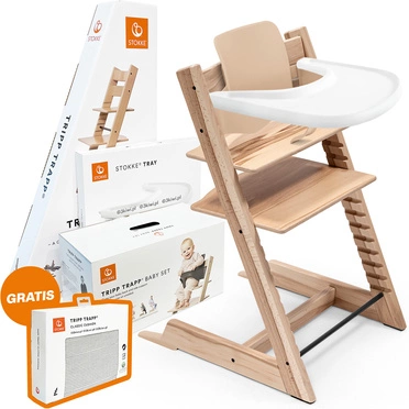 Stokke® Tripp Trapp® 3w1, gotowy zestaw do karmienia w duchu skandynawskiego designu. Z Baby Setem i tacką – od 6. miesiąca życia.