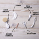 Szczotka do włosów wykonana z naturalnego miękkiego koziego włosia. przeznaczona dla noworodków i niemowlaków. Zapobiega występowaniu ciemieniuchy i elektryzowaniu włosów. Grzebyk idealny do czesania pierwszych włosków. Wygodne do chwytania i precyzyjnej kontroli przy pielęgnacji paznokci. Nożyczki z zaokrąglonymi krawędziami specjalne dostosowane do użytku dla najmłodszych dzieci. Bezpieczny i łatwy w  użyciu obcinacz, stanowi niezbędne uzupełnienie pielęgnacji. Cztery dwustronne pilniczki, konieczne do wyrównania brzegów paznokci. Pierwsza szczoteczka do zębów z ergonomicznym uchwytem i miękkim włosiem czyści ząbki, masując dziąsła zapewniając prawidłowy rozwój.