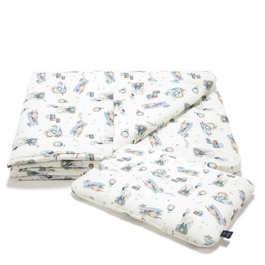 Zestaw pościeli dziecięcej składa się leciutkiej i miękkiej kołderki oraz płaskiej i całkowicie bezpiecznej, również dla niemowląt, poduszki. Atestowane, całkowicie bezpiecznie dla zdrowia wypełnienie, antyalergiczne, wykonane z włókna poliestrowego, zapewniają utrzymywanie odpowiedniej temperatury, cyrkulację powietrza, odprowadzanie wilgoci, tworząc idealne warunki do spokojnego i komfortowego snu. Dzięki szerokiej gamie wzorów można tworzyć różnorodne i piękne zestawy pościelowe.