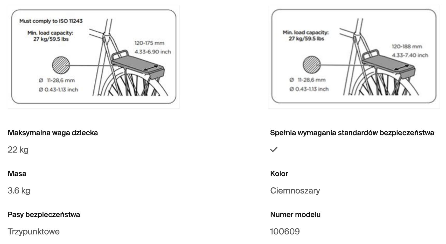 - Fotelik rowerowy mocowany na bagażnik do 27 kg