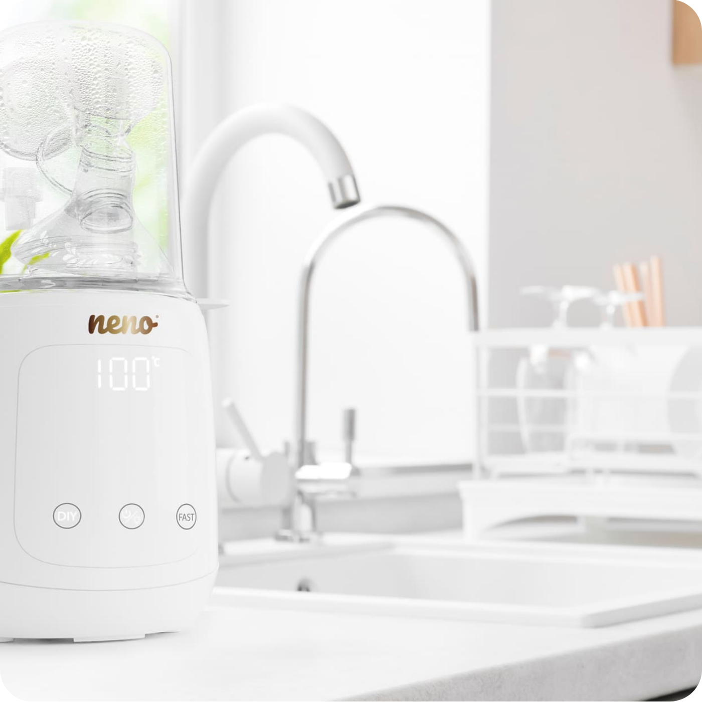 Smoczki, gryzaki, butelki oraz niektóre części laktatora wymagają regularnej sterylizacji. Sterylizowanie akcesoriów przy użyciu Neno Tocco pozwala zapobiec rozwojowi drobnoustrojów szkodliwych dla zdrowia dziecka, a przy tym jest wygodniejsze niż popularna metoda „kąpieli wodnej”.