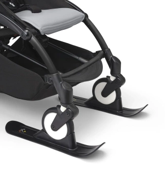 Narty YOYO® pasują wyłącznie do wózka YOYO³. Narty można błyskawicznie zaczepić na przednich kołach, dzięki czemu YOYO³ będzie z łatwością i bezpiecznie sunąć po śniegu. Ramę wózka można składać i rozkładać z założonymi nartami.